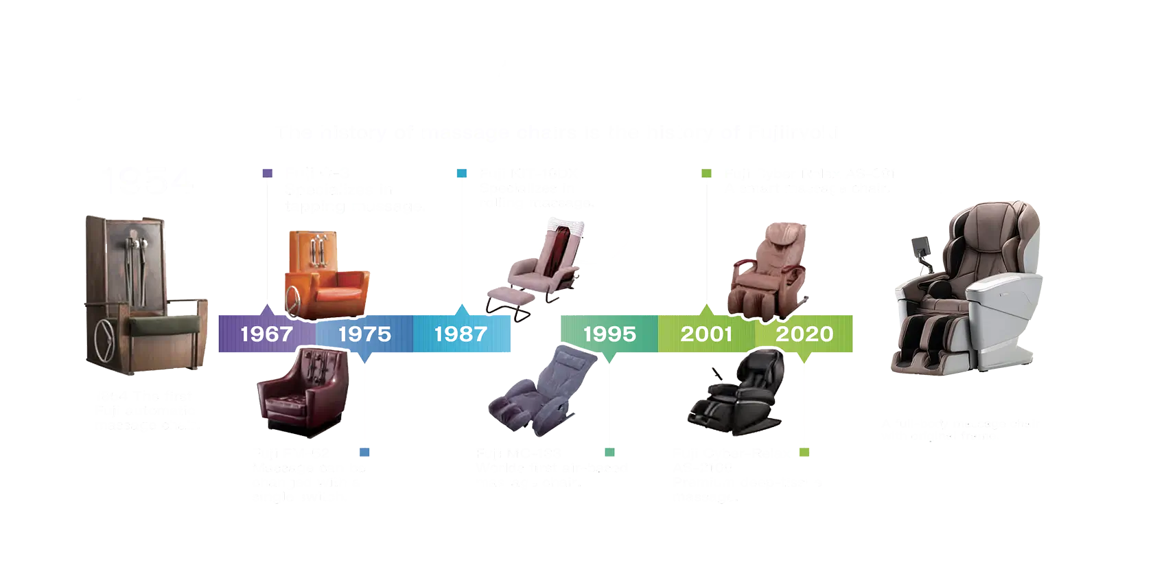 Fujiiryoki is the inventor of the premium japanese massage chair, making history in 1954 as the first company to mass-produce them. With a focus on improving health and relaxation, Fujiiryoki introduced the massage chair to the world, offering people an easy way to relieve stress and improve their well-being at home.